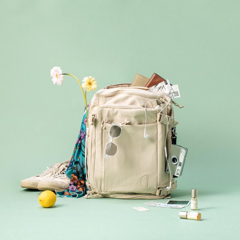 添加金屬鉤環可懸掛喜愛的吊飾;Apple Airtag專屬收納口袋,讓行李追蹤更安心。