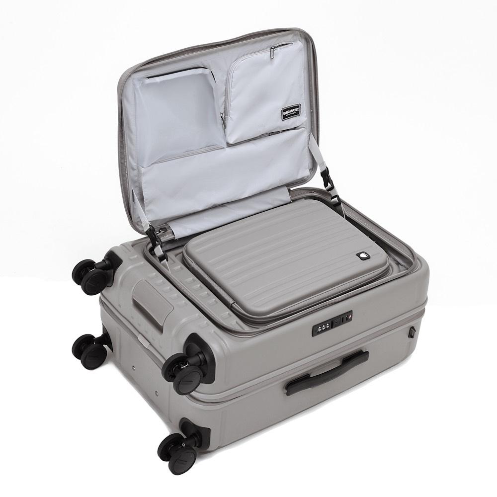 2.0版外型圓潤更美觀,修正轉角設計讓拉鏈更順暢,每個行李箱都有專屬序號金屬銘牌。